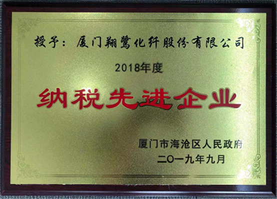 恭賀廈門翔鷺化纖股份有限公司被廈門市海滄區(qū)人民政府評(píng)為“2018年度納稅先進(jìn)企業(yè)”。