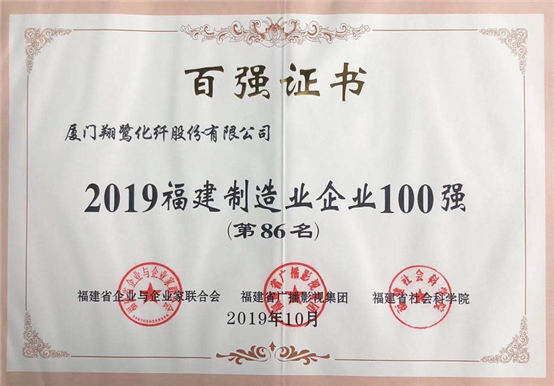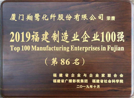 廈門翔鷺化纖股份有限公司榮獲“2019福建制造業(yè)企業(yè)100強”