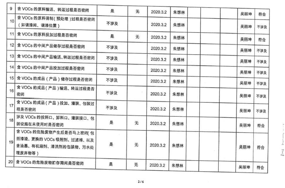 廈門市揮發(fā)性有機物污染防治企業(yè)自查表(2020年第二季度)
