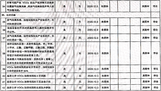 廈門市揮發(fā)性有機物污染防治企業(yè)自查表 (2020年 第四季度)