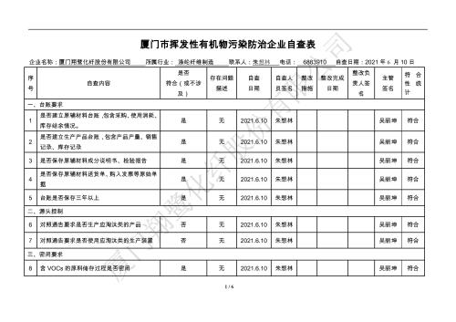 廈門(mén)市揮發(fā)性有機(jī)物污染防治企業(yè)自查表(2021年 第二季度)